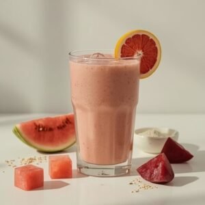 If you’re craving a smoothie that feels like skincare and self-care in one glass, meet the Collagen Blush Hibiscus-Dragon Citrus Aura Smoothie. It’s bright, tart-sweet, and intensely refreshing—thanks to chilled hibiscus tea and juicy blood orange—while watermelon and beetroot add that gorgeous “blush” hue. The result is a silky, vibrant blend that tastes like a summer spa day, but fits beautifully into a balanced breakfast, post-workout sip, or afternoon pick-me-up.