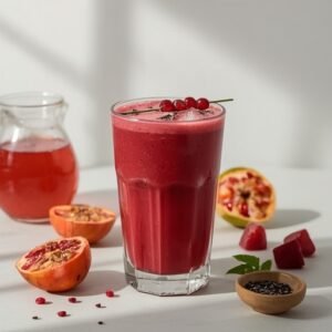 Serve immediately for the smoothest texture and freshest flavor. If you’re blending in advance, keep it tightly covered in the fridge and re-blend briefly before drinking. Because beetroot and pomegranate are naturally vibrant, this smoothie is also a showstopper in a clear glass—perfect for brunch, a post-gym refresh, or an afternoon pick-me-up.