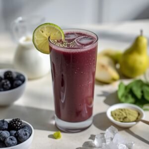 This smoothie is designed for real life: quick to assemble, easy to blend, and flexible enough to adapt to what you have on hand. Whether you’re looking for a balanced breakfast, a pre-workout boost, or an afternoon pick-me-up that won’t leave you feeling sluggish, the Midnight Berry Matcha Smoothie delivers with fiber, antioxidants, plant protein, and healthy fats in one glass.