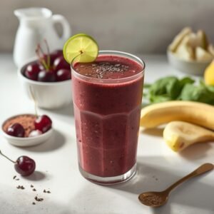 If you crave something sweet after dark but still want to feel good when you wake up, this Midnight Cherry Cacao Smoothie hits the spot. It tastes like a rich cherry-chocolate dessert, yet it’s built from whole-food ingredients you can blend in under two minutes. Frozen dark cherries bring bold flavor and a naturally vibrant color, cacao adds deep cocoa intensity, and a touch of pear and banana creates a creamy texture without dairy. Best of all, this smoothie is vegan and gluten-free, making it an easy, feel-good choice for a late-night treat, a post-workout sip, or a quick breakfast that feels like indulgence.