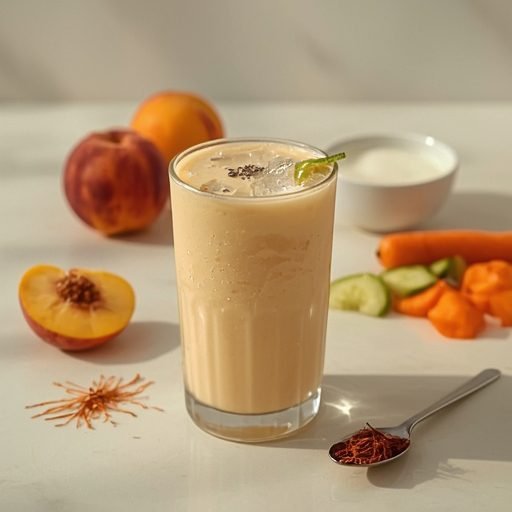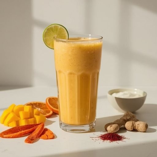Bright, creamy, and perfumed with a whisper of spice, the Saffron Sunset Lassi smoothie is the kind of drink that