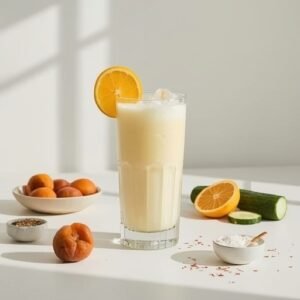 The Skin Radiance Saffron Apricot Lassi Smoothie is a simple, SEO-worthy staple for anyone searching for a saffron smoothie, probiotic lassi smoothie, or beauty smoothie that tastes genuinely delicious. With kefir’s tang, apricot’s velvety sweetness, orange’s brightness, cucumber’s clean finish, and saffron’s signature aroma, it’s an easy recipe that feels elevated enough for weekends but quick enough for busy mornings. Blend it, let the saffron bloom, and enjoy it immediately for the smoothest texture and freshest flavor.