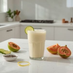 If your skin has been looking a little tired or dull lately, your blender might be the easiest place to start. This Skin Radiance Saffron-Guava Lassi Smoothie takes the creamy comfort of a lassi-inspired drink and upgrades it with glow-friendly ingredients: unsweetened goat kefir for a tangy, probiotic base; ripe guava and persimmon for naturally sweet, vitamin-rich fruit; cucumber and lime zest for a fresh, spa-like finish; and a functional boost from collagen peptides and ground flaxseed. The result is a silky, lightly tropical smoothie that feels indulgent but works as a nourishing breakfast, post-workout refuel, or afternoon pick-me-up.