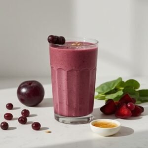 A squeeze of lemon can lift the sweetness of plums and grapes and make the flavor taste “cleaner.” This is especially useful if your plums are very ripe and the smoothie leans dessert-sweet.