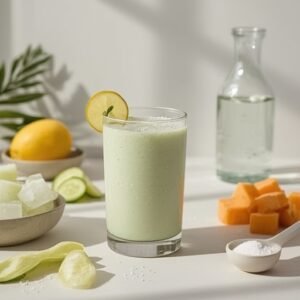 - Hydration support from mineral water, cucumber, and honeydew: Skin can look tighter and more luminous when you’re well-hydrated. Cucumber and honeydew are naturally water-rich, making this smoothie especially refreshing while helping you meet daily fluid needs.