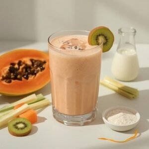 Ripe papaya brings a sunny flavor and a naturally creamy mouthfeel. It also supplies antioxidants and helpful nutrients that support overall wellness—important because skin often reflects what’s happening internally. The result is a smoothie that tastes like dessert but aligns with a skincare-minded lifestyle.