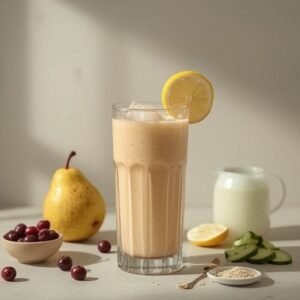 This Skincare Support Nordic Cloudberry Rye Smoothie is a simple, refreshing recipe that leans into functional ingredients: probiotic-rich kefir, antioxidant-packed cloudberries, hydrating cucumber, and bright lemon, finished with collagen peptides and flaxseed for extra support. It’s quick enough for busy mornings, elegant enough to serve as a sunny afternoon reset, and flexible enough to customize to your taste and goals.